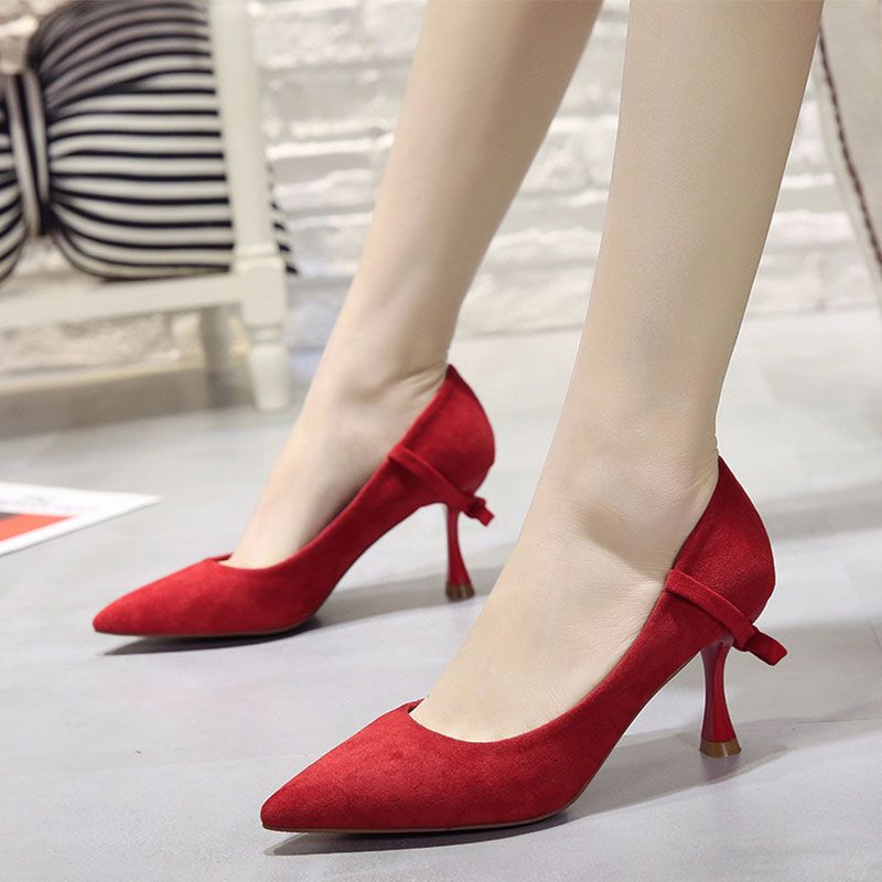 acquista primavera e autunno nuovo top suede scarpe col tacco alto tacco a spillo da donna con tacco a spillo centrale scarpe da sposa rosse scarpe from www.dhresource.com